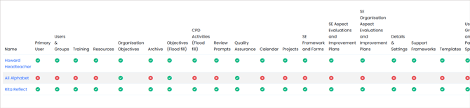 Admin permissions can be given to users who have responsibility for managing certain processes across the organisation such as adding users, flood filling objectives to staff or running whole staff reports.