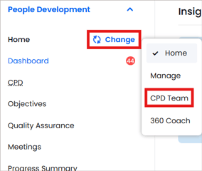- The individual(s) will now see the CPD Team under the 'Change' menu in the left hand navigation.