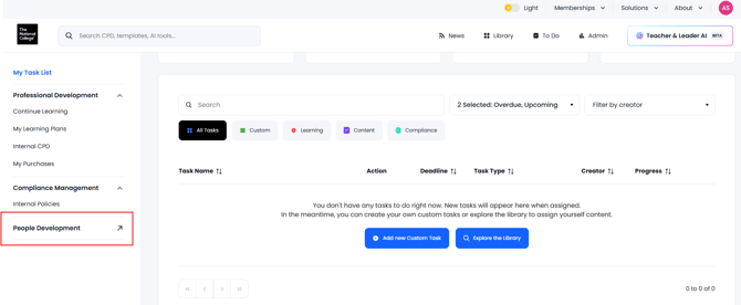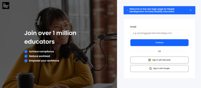 If you login via People Development you'll now be redirected to The National College login page. You'll see a banner explaining the changes: