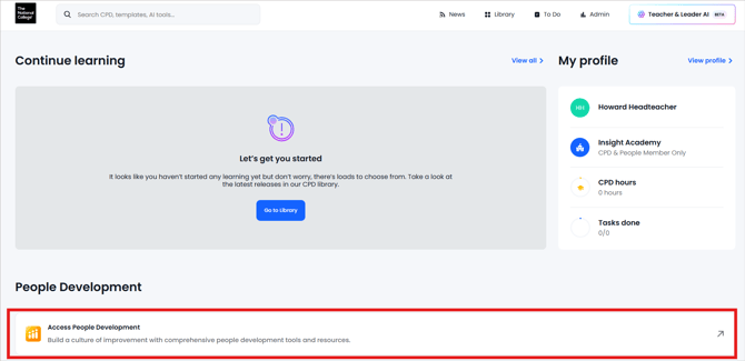 If you see this page, click on the People Development section to get to your usual People Development dashboard: