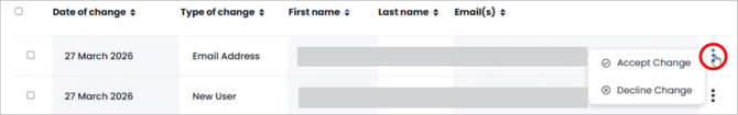 To accept or decline a single user click on the 3 dots at the end of the user row.