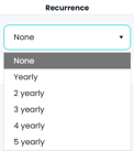 - Use the drop down under the Recurrence heading to select the period that you want users to refresh their training:
