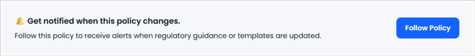 - Use the 'Unfollow Policy' button to stop following and prevent and notifications about this content, or navigate to the Alert Manager Page to view and change all of your current Alerts.