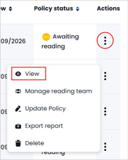 - Once all team members have completed this task, the policy status will be updated to reflect the next stage.